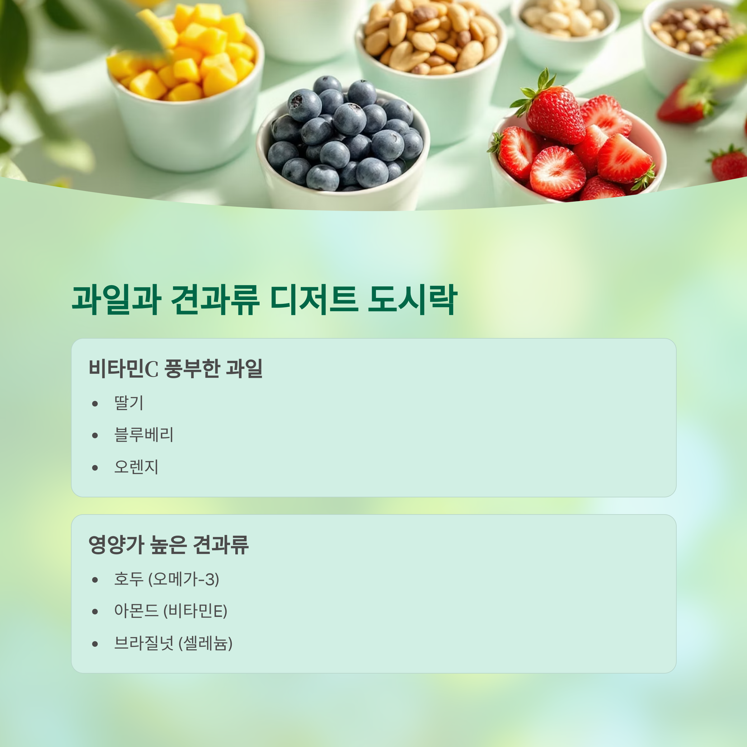 제철 과일과 견과류 디저트 도시락