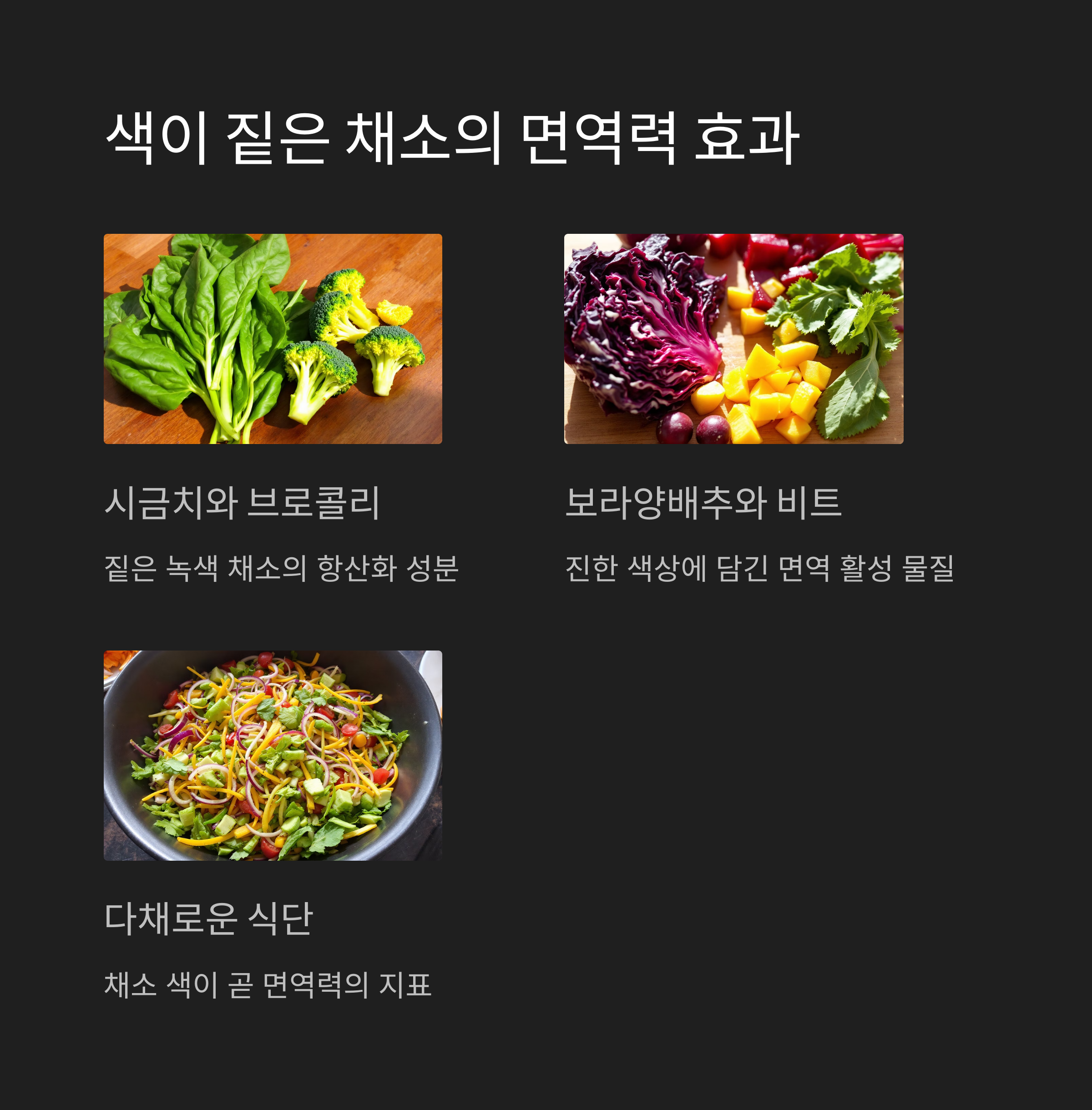 "채소 색이 곧 면역력의 지표"라고 말할 수 있을 정도입니다