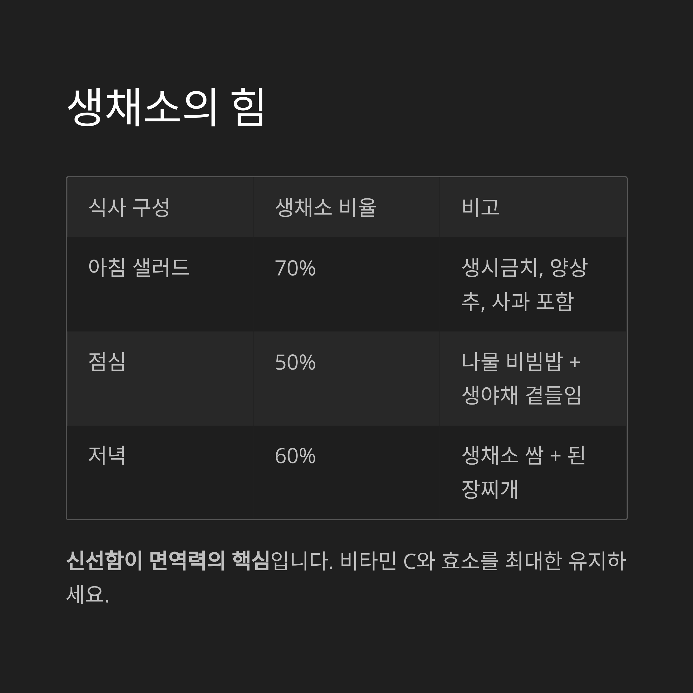 신선함이 면역력의 핵심이라는 것을 잊지 마세요
