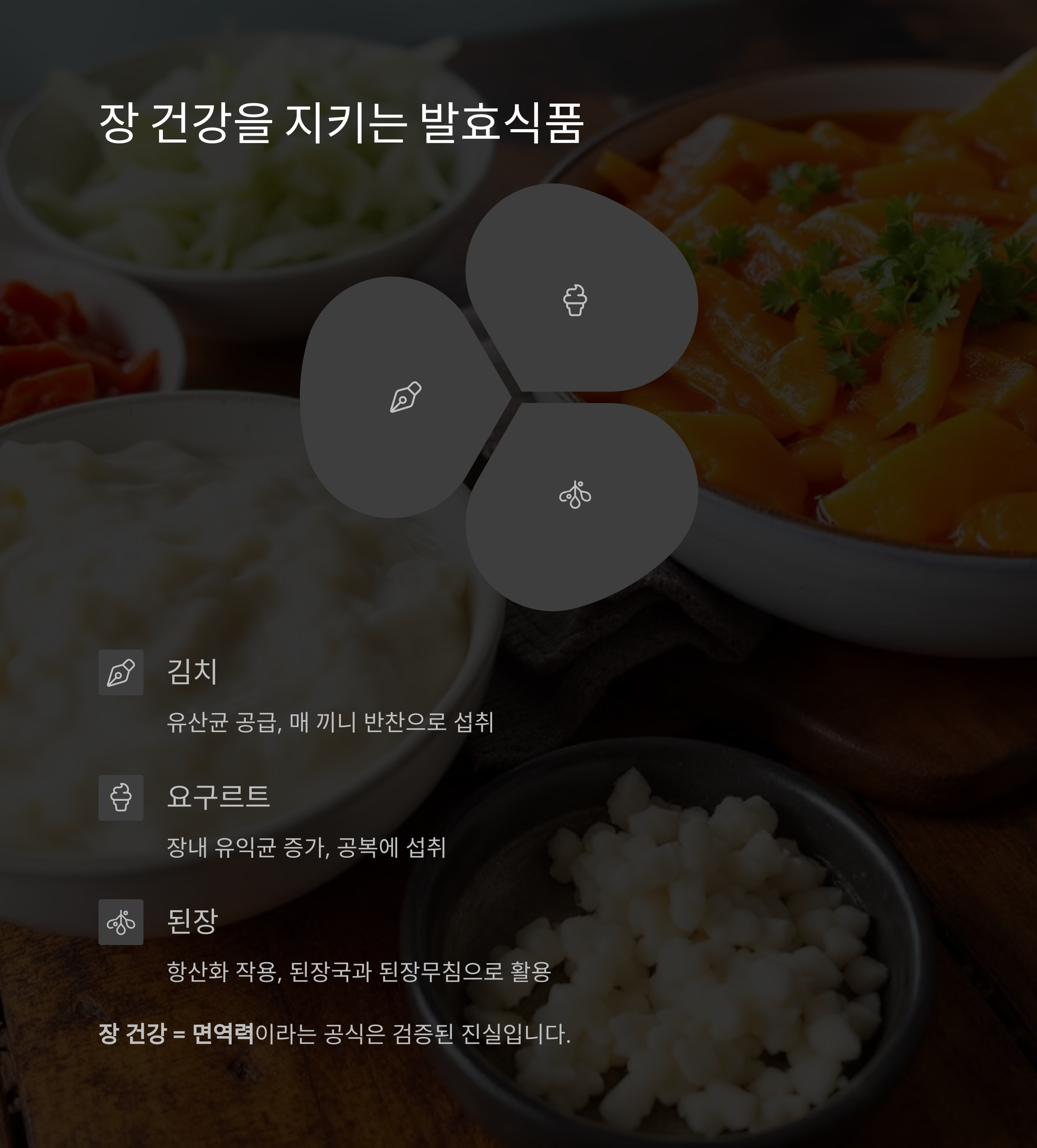 이곳을 지키는 것이 바로 발효식품의 꾸준한 섭취입니다