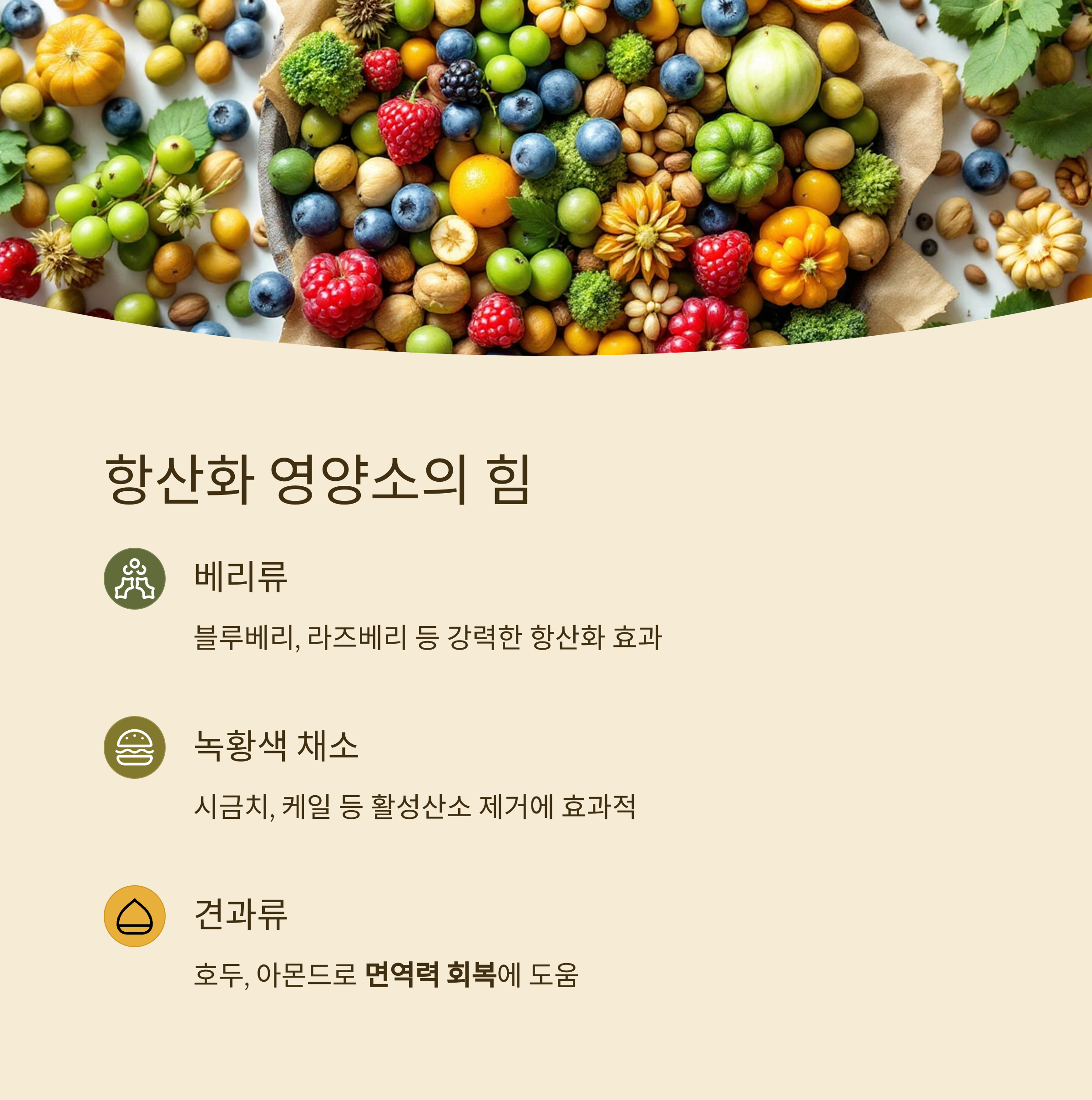 과일, 채소, 견과류는 강력한 항산화제를 함유하고 있습니다
