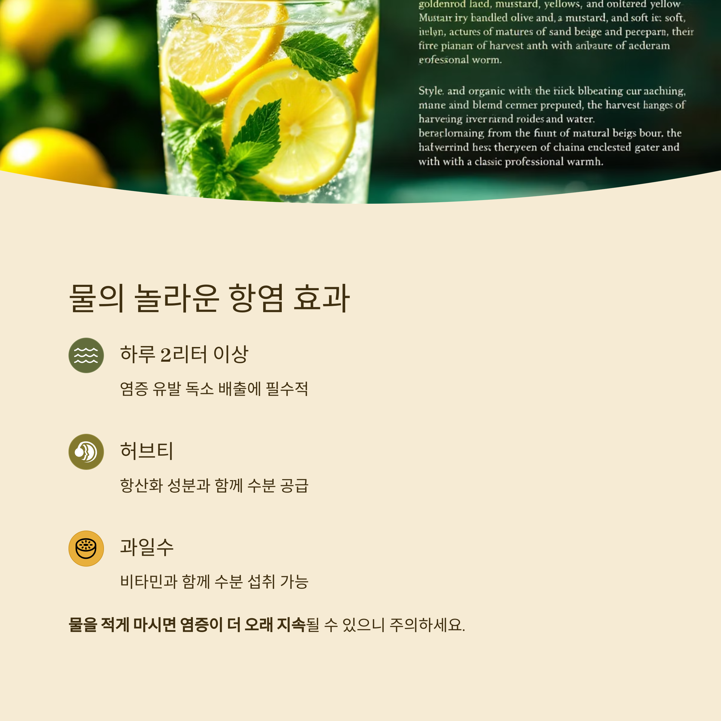 염증 유발 독소를 배출하고 세포 회복을 돕는 필수 요소입니다
