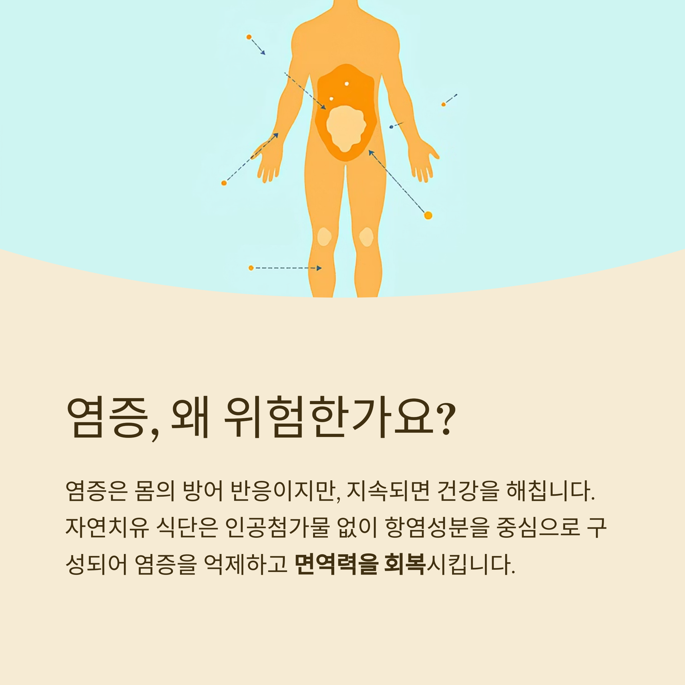 염증은 억누르는 것이 아니라 스스로 회복할 수 있도록 돕는 것이 핵심입니다